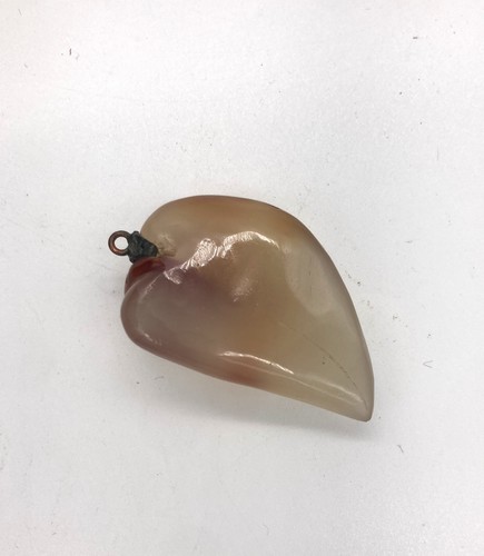 PENDENTIF en pierre translucide style agate tigrée et sculptée de forme goutte et à décor sculptée d'une feuille en partie supérieure.
