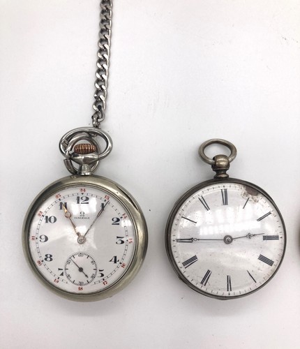 - Une en argent (950), remontage à clé (82,4 g - éclat au cadran, ne fonctione pas)