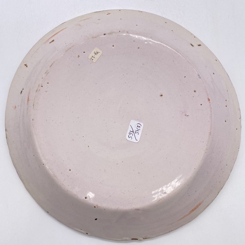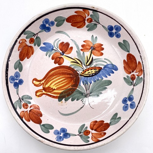 TROIS ASSIETTES de forme calotte, en faïence, à décor polychrome au centre de bouquets de fleurs pour deux et une avec fougères sur l'aile.