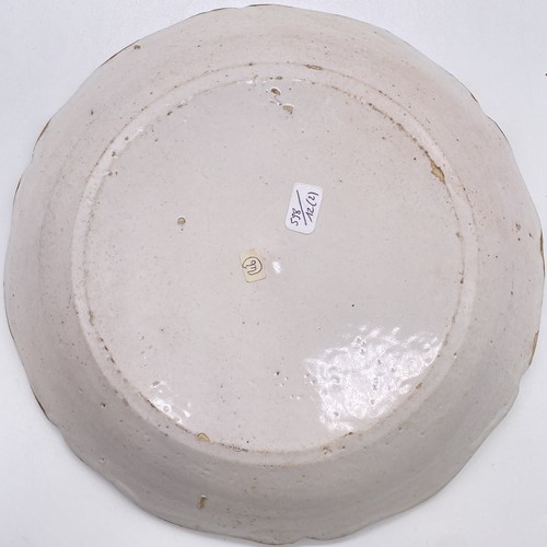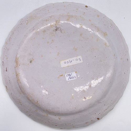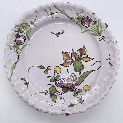 DEUX ASSIETTES à bord contourné, en faïence à décor polychrome au centre d'un bouquet formé d'œillet et branches en W pour l'autre.