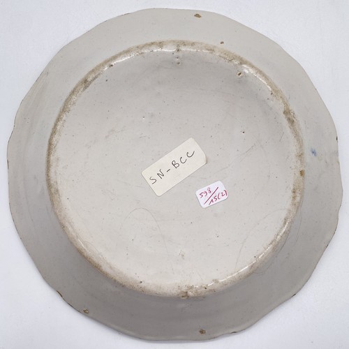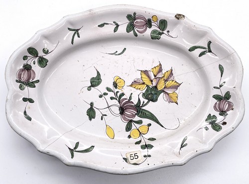 ASSIETTE et PLAT ovale à bord contourné, en faïence à décor polychrome de bouquet d'œillet et renoncule.