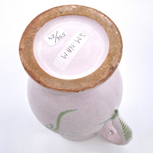POT A EAU de forme balustre, en faïence à décor polychrome de renoncules bleues, fleurs de genets manganèse et fougères.
