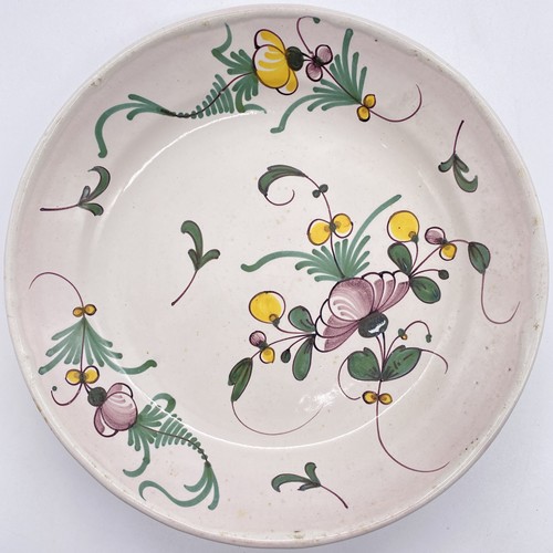 TROIS ASSIETTES en faïence à décor polychrome de renoncule et fleurs de genet.