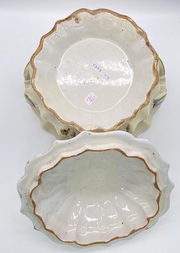 POT A OILLE couvert en faïence, à bord contourné, le couvercle en forme de dôme, décor polychrome de bouquets formés de double roses, pavots et œillet et papillons.