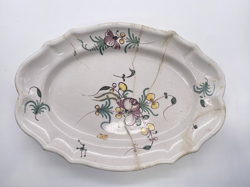 DEUX PLATS ovales à bord contourné, en faïence à décor polychrome de bouquets de roses et pois de senteurs.