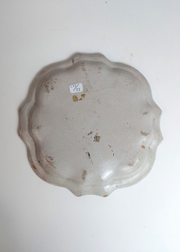 PETIT PLAT carré à bord contourné, en faïence émailéle polychrome à décor de bouquet de fleurs.