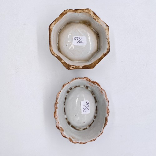 SALIERE octogonale, en faïence à décor polychrome de fleurettes et filets.