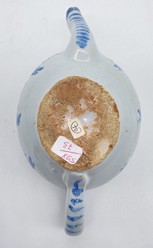 CANARD DE MALADE en faïence à décor en camaïeu bleu de brindilles fleuries et peignés.