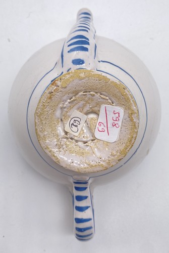 CANARD DE MALADE en faïence à décor en camaieu bleu de rinceaux feuillagés et galons à croisillons.
