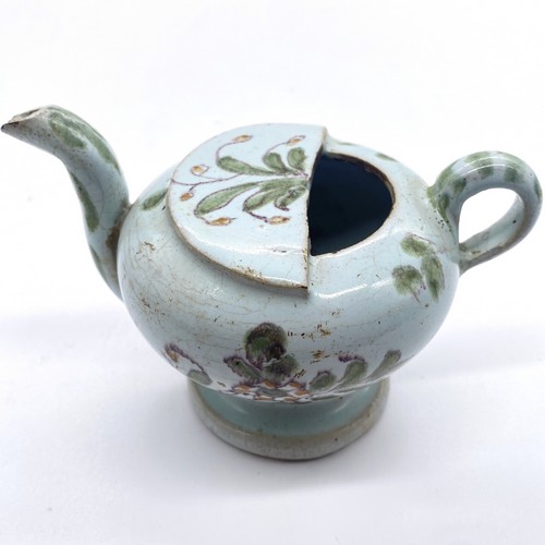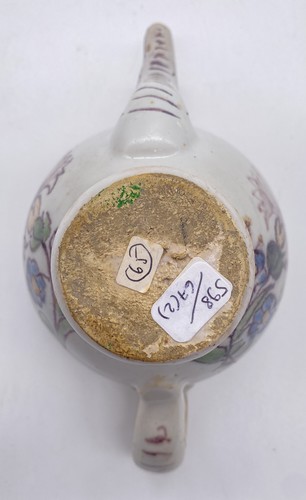 DEUX CANARDS DE MALADE en faïence à décor polychrome de bouquets de fleurs et tiges fleuries pour l'un, et bouquets de fleurs à larges œillets pour l'autre.