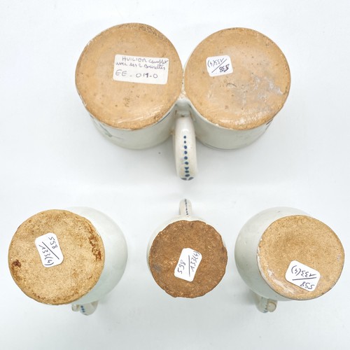 HUILIER-VINAIGRIER et TROIS BURETTES en faïence à décor polychrome d’oeillets.