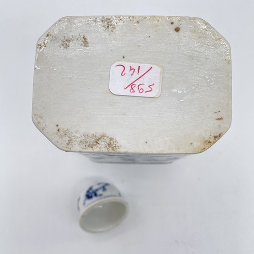 BOÎTE A THÉ couverte, en porcelaine à décor en cainaïeu bleu de branches fleuries.