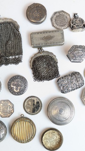 JOINT : DEUX BOURSES en mailles et CINQ BOÎTES rondes en métal.