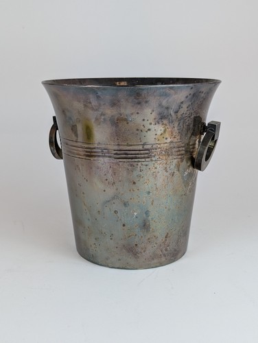 SEAU A CHAMPAGNE en métal argenté à deux anses annulaires et filets sur le corps.