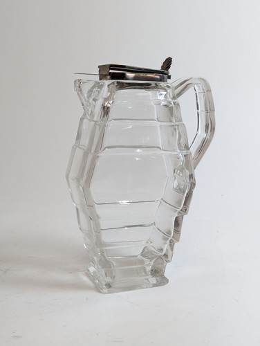 CARAFE en cristal de style Art déco avec son couvercle en argent.