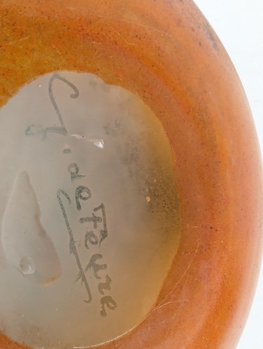 PICHET en pâte de verre teinté vert et orange. Signé sous la base.