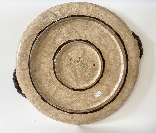 PLAT de présentation circulaire à bords contournés en céramique émaillée à décor dans le bassin de coquelicots, bleuets et épis de blés.