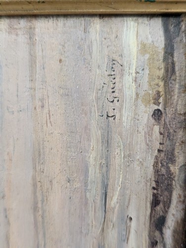 Huile sur carton toilé signée et datée (19)90 en bas à gauche, étiquette au dos