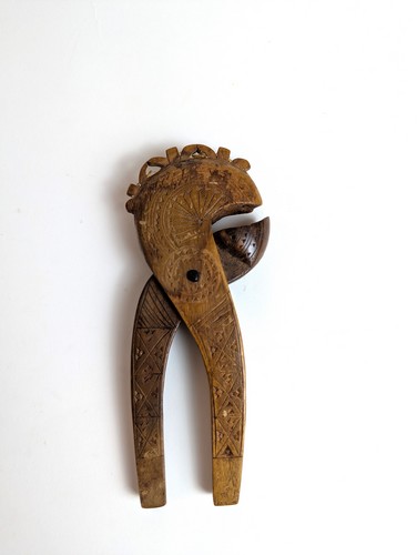 CASSE NOISETTES en bois fruitier à décor sculpté de rosaces et motifs géométriques.