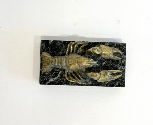ÉCREVISSE en bronze sur un socle en marbre vert-de-mer, formant presse-papier.