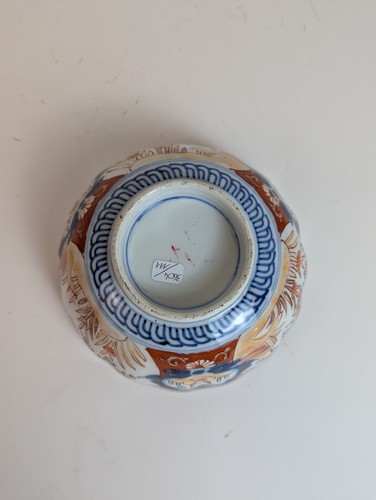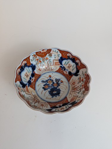 BOL chantourné en porcelaine émaillé Imari à décor de branchages de fruits et paysages dans des réserves alternées.