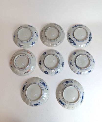 HUIT ASSIETTES en porcelaine à décor Imari à différents décors.