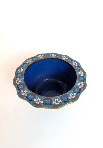 PETIT CACHE-POT en bronze et émaux cloisonnés à décor de fleurs de lotus et rinceaux.