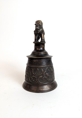 CLOCHE en bronze à décor de kornak dans des quadrilobes. La prise en forme d'éléphant arnaché.
