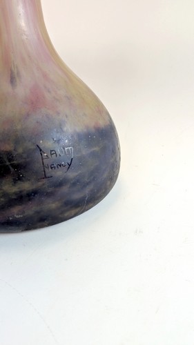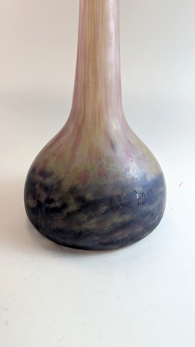 SPECTACULAIRE VASE à haut col et base pansue, en verre soufflé marmoréen rose.