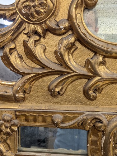 (Petits éclats à la dorure et miroirs fendus en bordure)