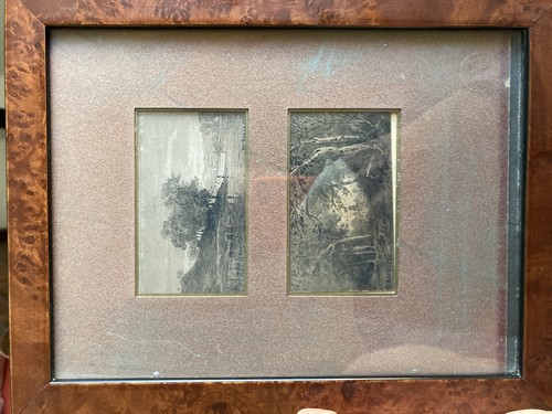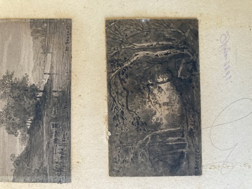 Deux lavis d'encre miniatures peints sur carte de visite, signés et datés décembre 1881