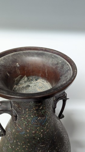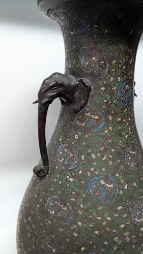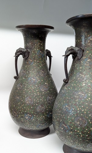 PAIRE DE VASES de forme balustre en émaux cloisonnés à fond vert et à décor dans des médaillons de dragons sur fond de volutes.
