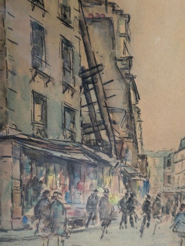 Aquarelle et pierre noire signée et située en bas à gauche.