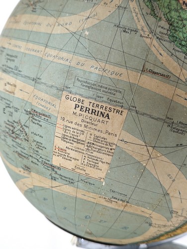 GLOBE terrestre en verre soufflé et lithographié à monture en métal brossé.