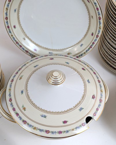 SERVICE DE TABLE en porcelaine à décor de guirlandes de fleurs polychromes et filets or comprenant : 43 pièces soit :