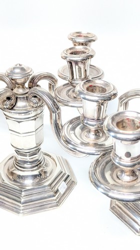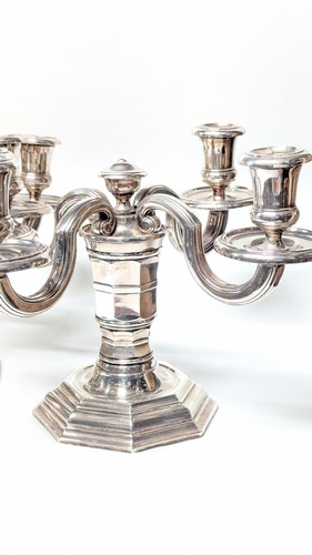 PAIRE DE CANDÉLABRES en métal argenté à quatre bras de lumière.
