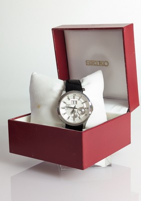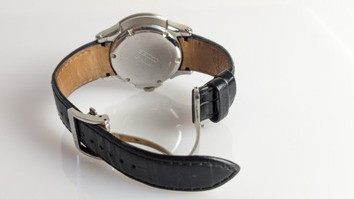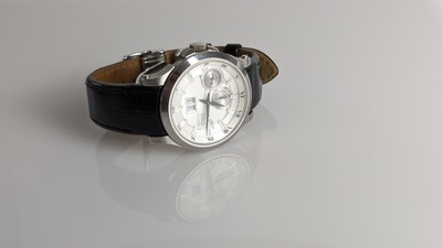 MONTRE bracelet d'homme Premier Kinetic Perpetual, mouvement automatique, boîtier rond en acier, cadran blanc à guichet dateur double à 12h, cadran des mois à 6h, cadran des heures/24 à 4h, guichet de rapport à l'année bissextile à 9h.