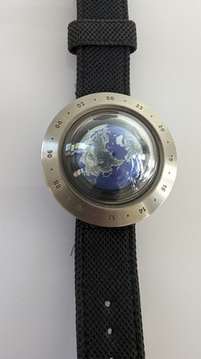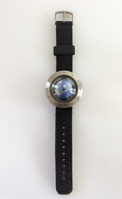 MONTRE bracelet, mouvement quartz SII (Seiko Instruments Inc.), à boîtier circulaire en titane gravé par 24, et au centre une mappemonde.