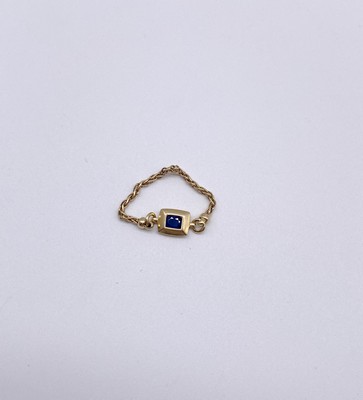 BAGUE SOUPLE en or (750) centrée d'un saphir ovale dans un serti de forme carrée.