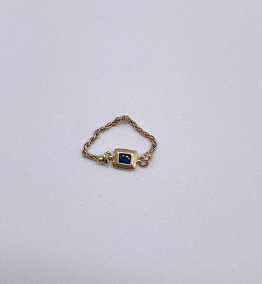 BAGUE SOUPLE en or (750) centrée d'un saphir ovale dans un serti de forme carrée.