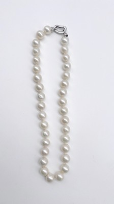 COLLIER DE PERLES de culture chocker (12 mm env). Fermoir design en argent (925).