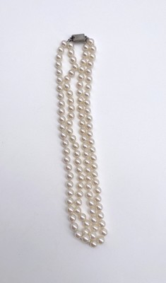 COLLIER DE PERLES de culture double rang choker. Fermoir en argent.