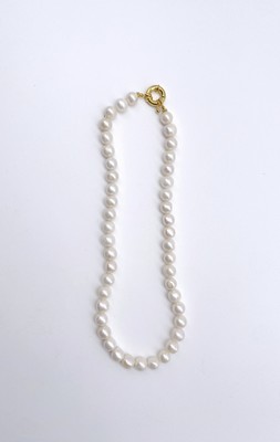 COLLIER DE PERLES de culture chocker. Fermoir en métal doré.