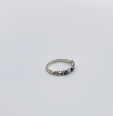 DEMI-ALLIANCE en or gris (750) à quatre petits diamants et trois petits saphirs taille brillant en alternance.