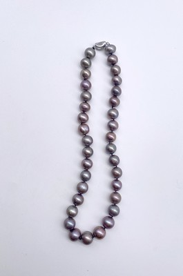 COLLIER DE PERLES de culture choker grises (11,8 mm env.). Fermoir en argent (925).
