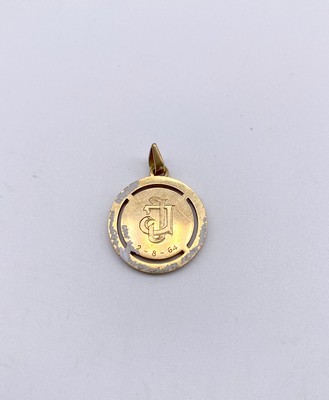 MEDAILLE en or (750) « Plus qu’hier et moins que demain » dans un entourage de rubis calibrés.