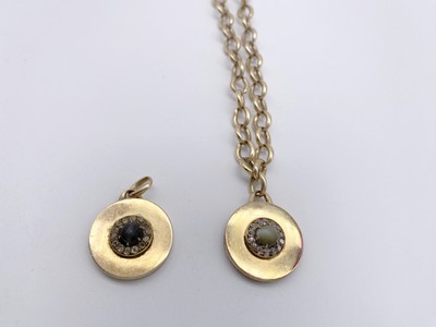 JOINT : PENDENTIF porte-souvenirs serti d'un cabochon de pierre noire dans un entourage de diamants taille brillant.