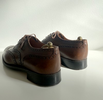 PAIRE DE RICHELIEU en cuir marron à bout fleuri.