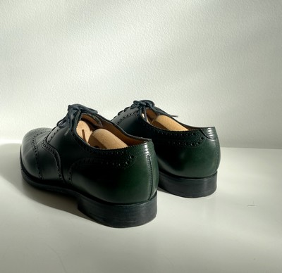 PAIRE DE RICHELIEU, modèle Klein, à bout fleuri en cuir vert bronze.