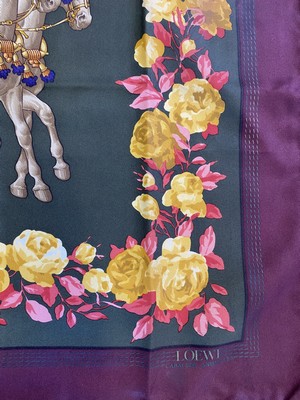 FOULARD en soie modèle "Caballos Andaluces", bordure bordeaux.